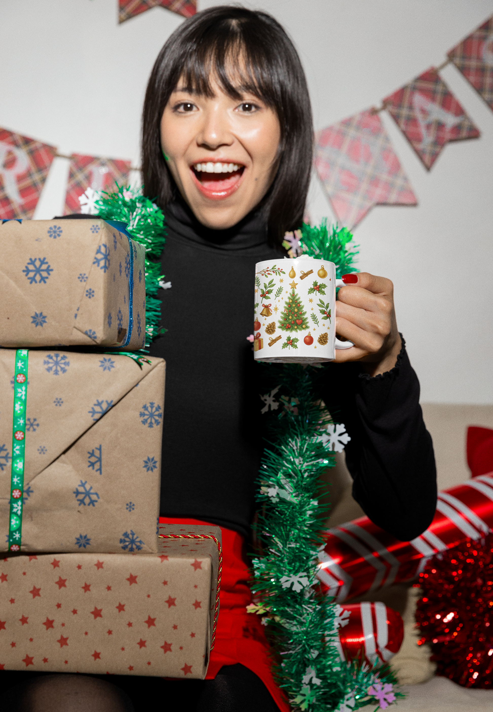 Christmas Pattern Ceramic Mug (11oz / 15oz) that brings a festive and cozy vibe to your morning coffee or tea routine. Perfect for Christmas celebrations and holiday gift-giving. Suitable for anyone looking to add a touch of holiday spirit to their daily routine.