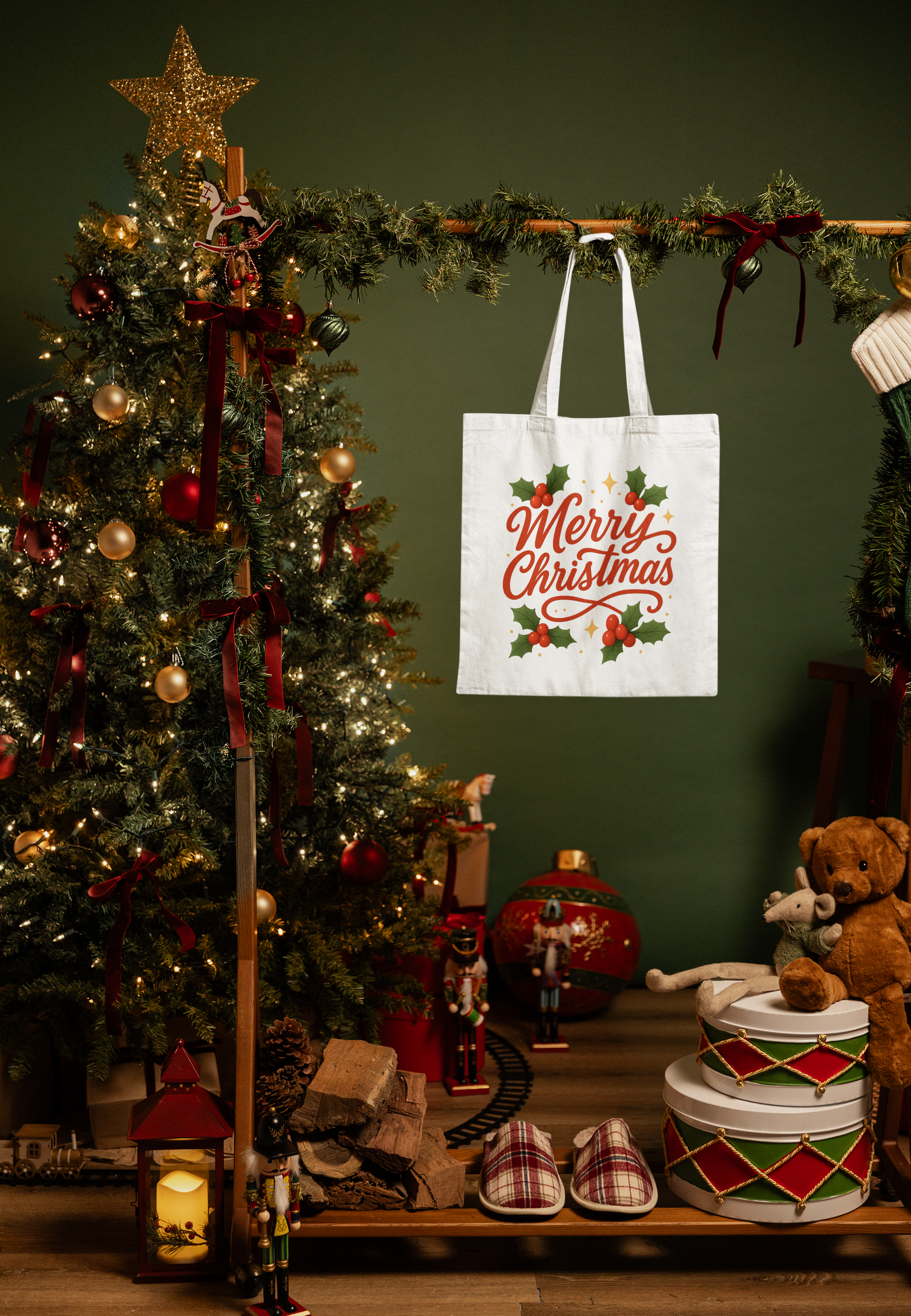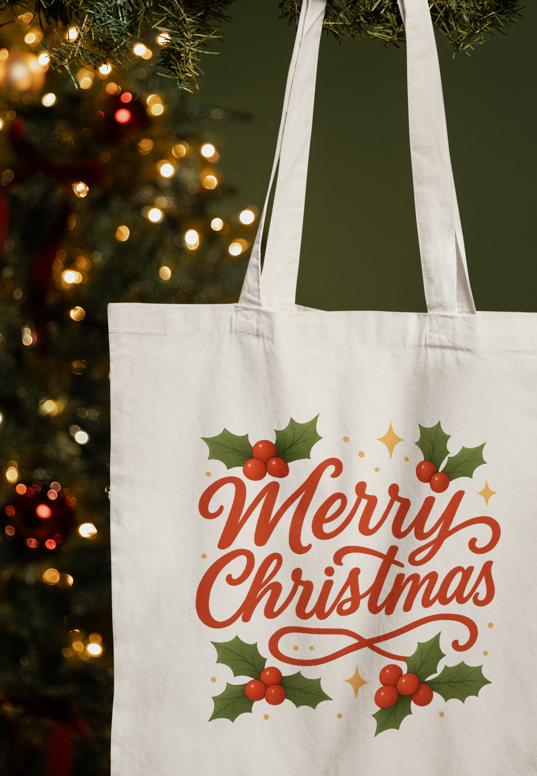 Carry a quiet bit of holiday cheer wherever you go. This Merry Christmas tote transforms ordinary errands into small moments of seasonal warmth — jingling lights, the soft hush of falling snow, and hands warmed by a steaming cup. The roomy, boxed-corner shape holds groceries, wrapped presents, or a pile of cozy knits without collapsing. Reinforced handles and durable polyester mean this bag can be grabbed again and again for market mornings, tree lot runs, or last-minute wrapping sessions. Choose a handle color that matches your mood or your holiday decor and tuck it into the car for a spontaneous visit to friends and family.