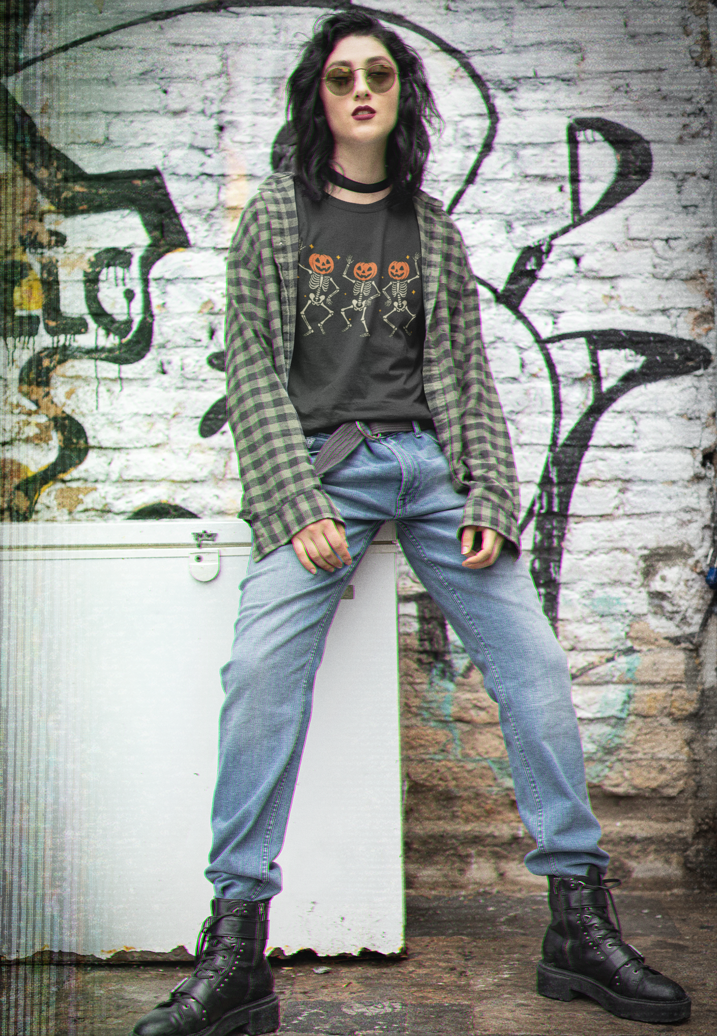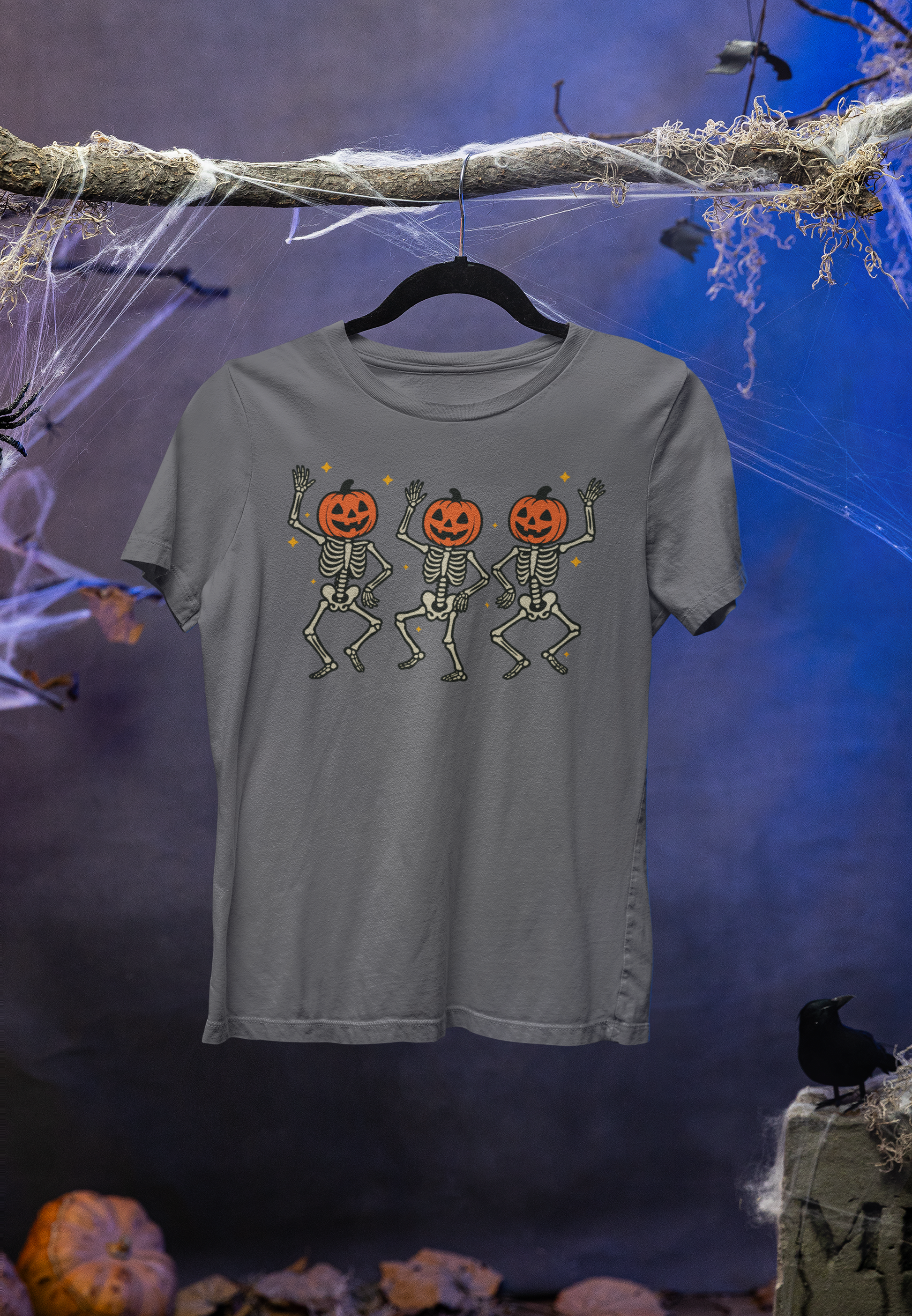 This Halloween-themed T-shirt features dancing skeletons and a pumpkin design, perfect for spooky season. Made with heavy cotton fabric, this unisex tee is ideal for adults looking to add a festive touch to their wardrobe. Great for Halloween parties, trick-or-treating, and embracing the spooky spirit.